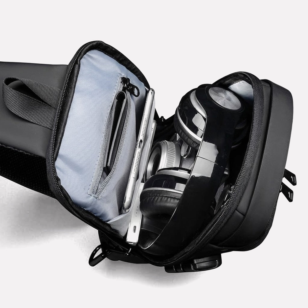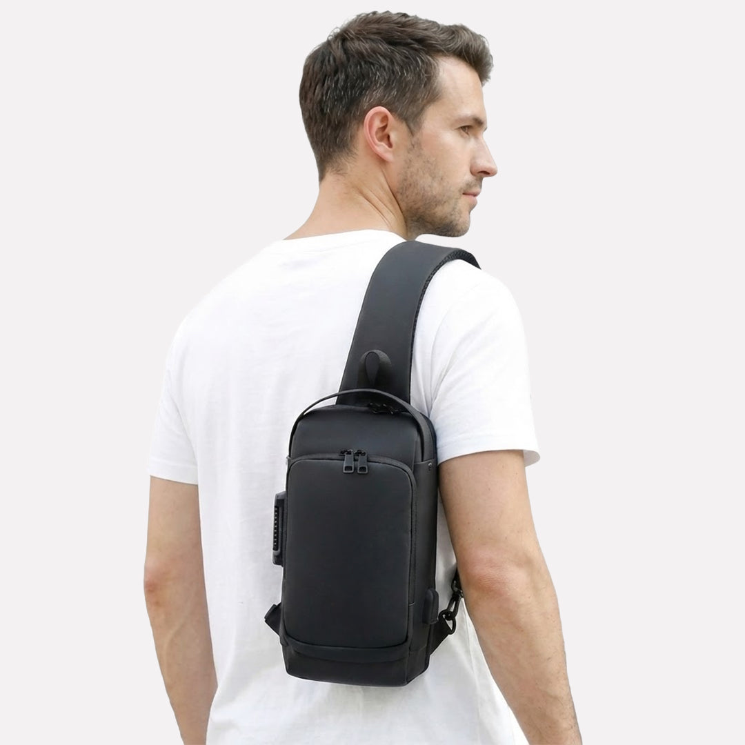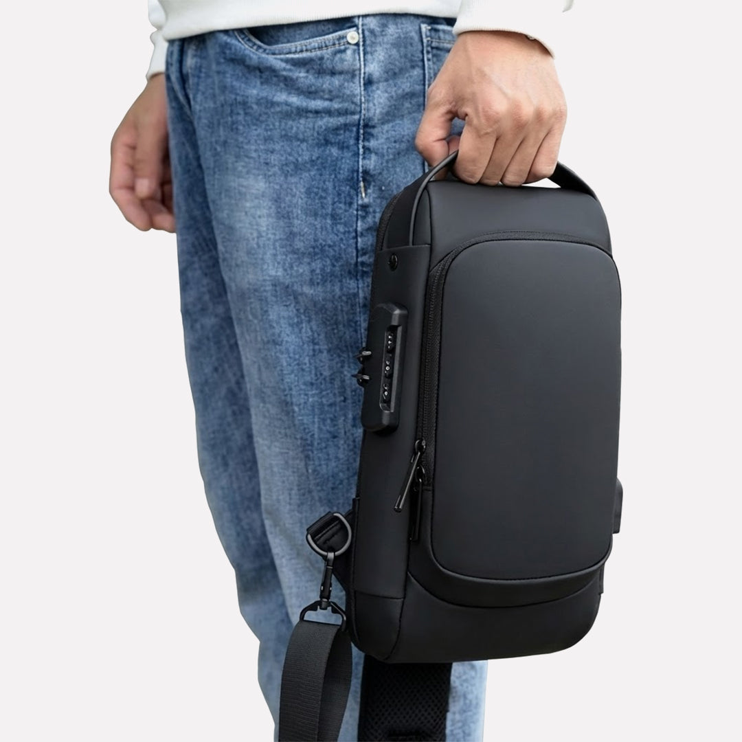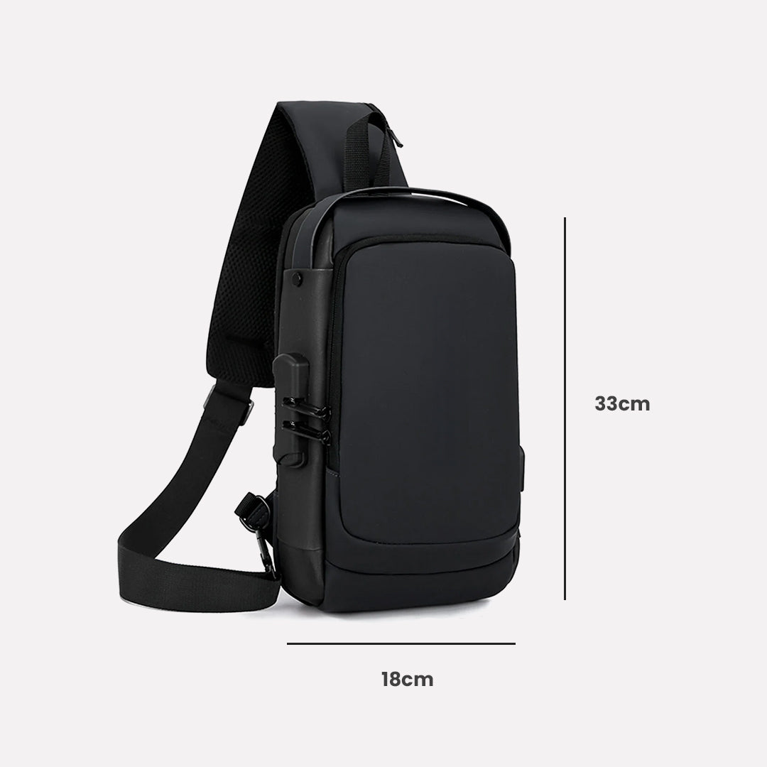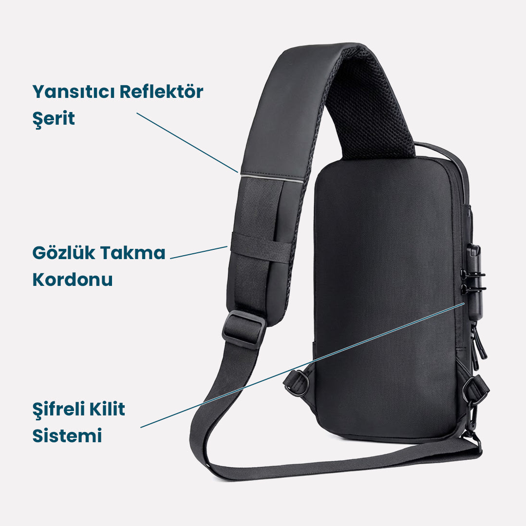 Yırtılmaya ve suya dayanıklı birinci sınıf Oxford kumaştan üretilen bu çanta, entegre şifreli kilit sistemiyle hırsızlara karşı tam koruma sağlarken; dış tarafındaki USB portu sayesinde powerbank'inizi çıkarmadan hareket halindeyken telefonunuzu şarj etmenize olanak tanır.