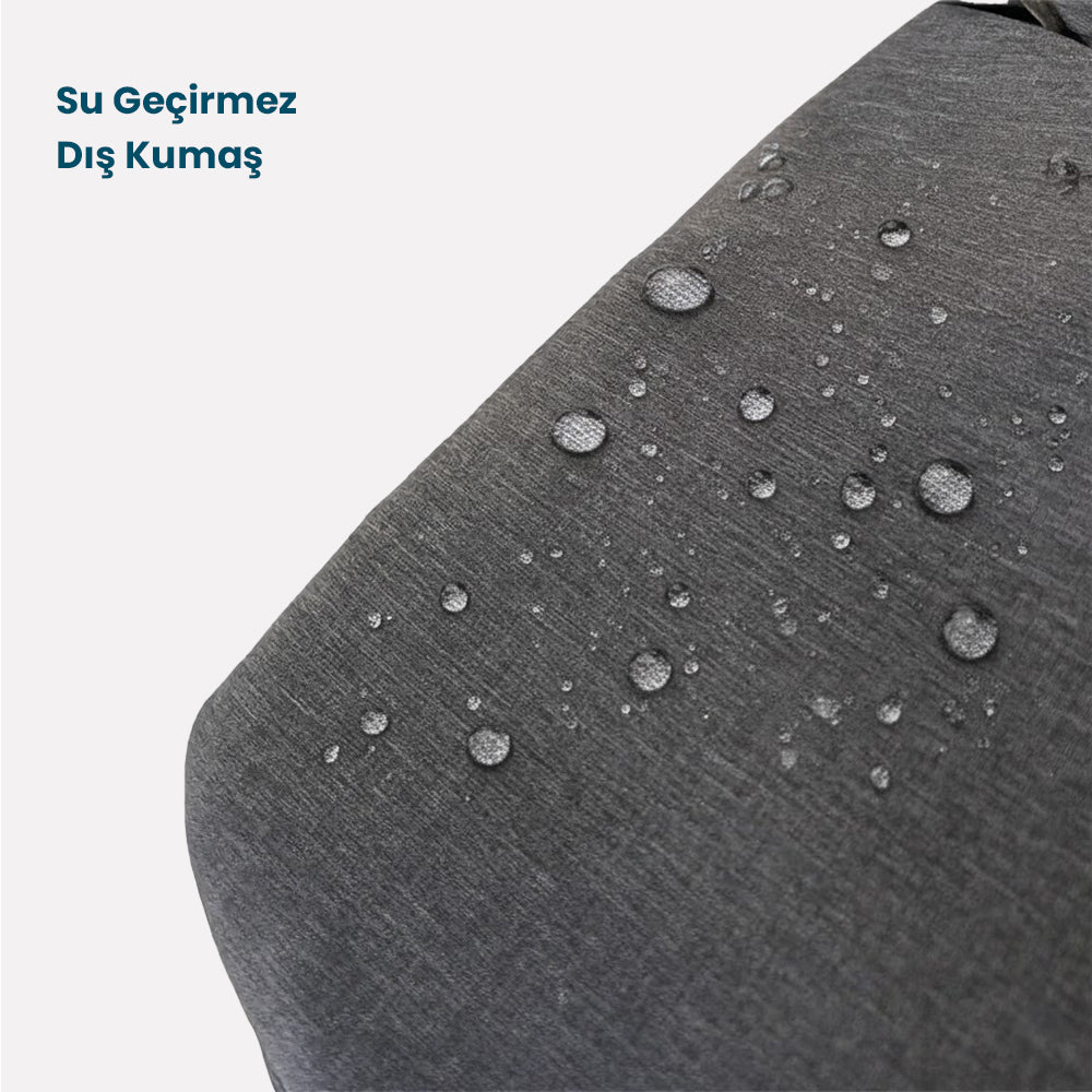 Hırsızlık Önleyici Seyahat Çantası, suya dayanıklı malzemelerden yapılmıştır ve eşyalarınızı kısa süreli hafif yağmurlarda ıslaklıktan koruyacaktır. Ancak, su geçirmez olarak tasarlanmamıştır, bu nedenle yoğun veya uzun süreli yağmura maruz bırakırsanız su sızabilir.